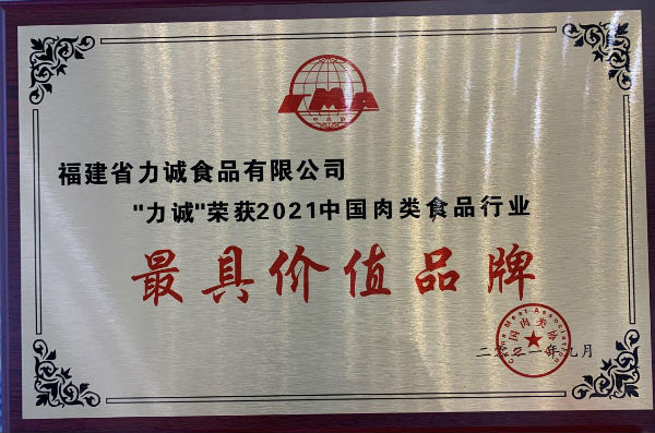 福建力誠食品榮獲“2021年中國肉類食品行業最具價值品牌”等三大重量級獎項